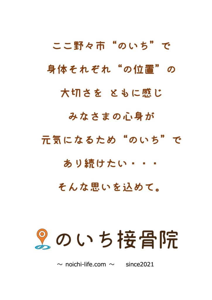 この度、10/27(水)に野々市押野で「のいち接骨院」を開院させて頂くこととなりました。