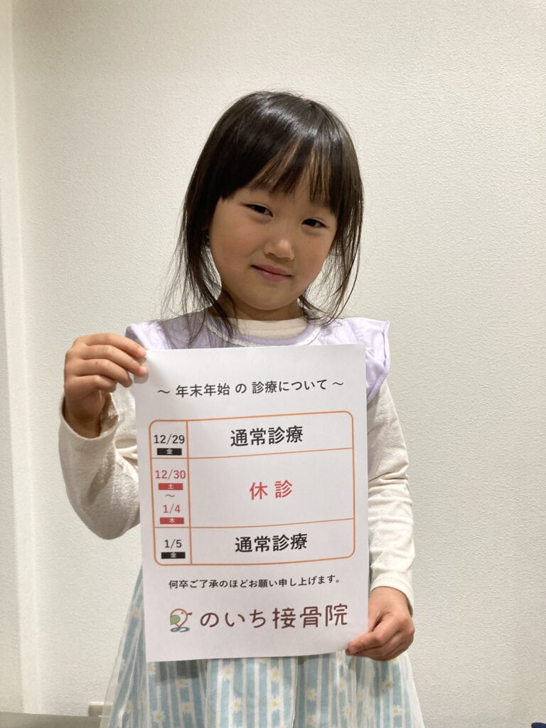 尚、誠に勝手ながら、年末年始は1月5日(金)より通常診療となりますので、よろしくお願いいたします。